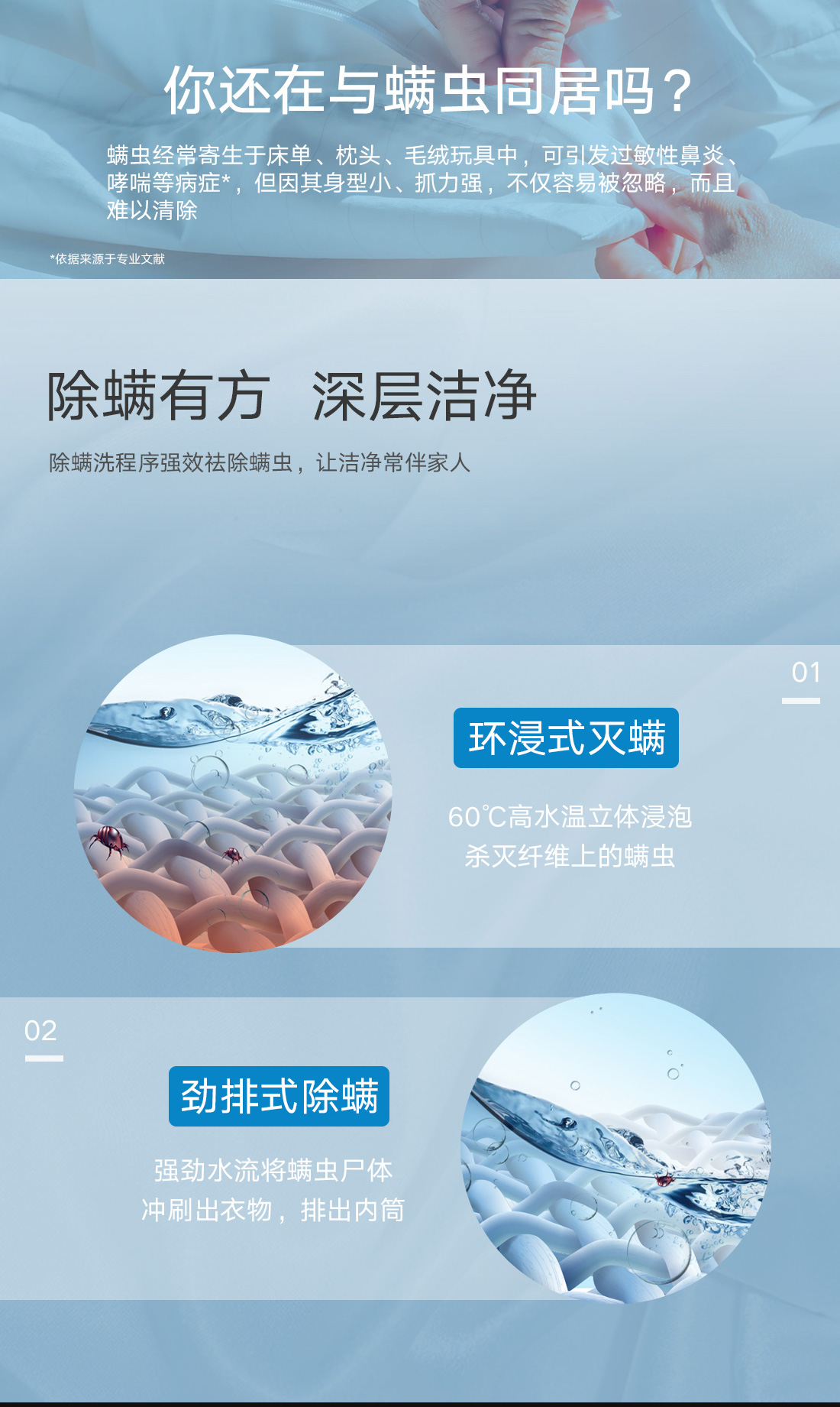 极净去污,一次洗净多类污渍,洗烘一体,即洗即烘即穿.