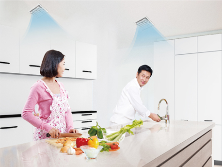 情侣送风:厨享特设双出风口,开启时,两个风口从不同位置出风,增加夫妻搭档烹饪的乐趣。 定点送风:设置定点送风,直吹人体,能快速降低燥热感,让您享受清凉烹饪,同时避免大范围送风产生的能耗。