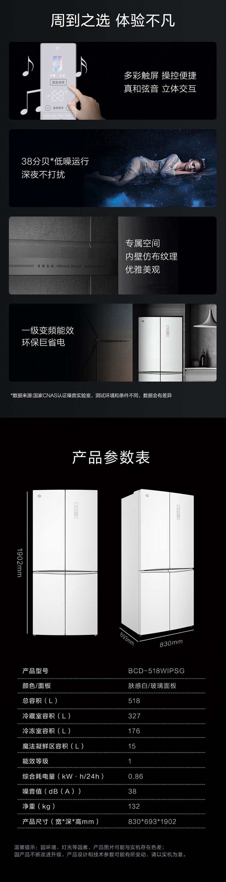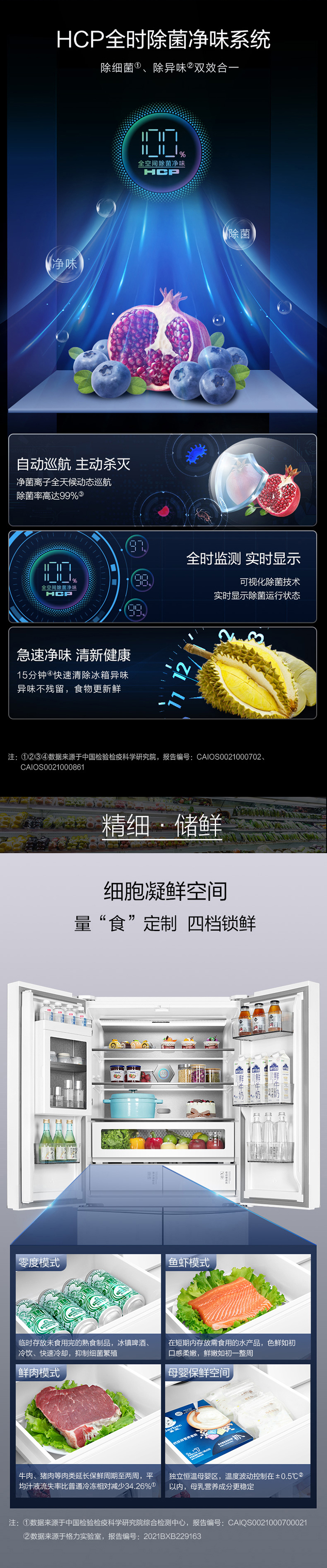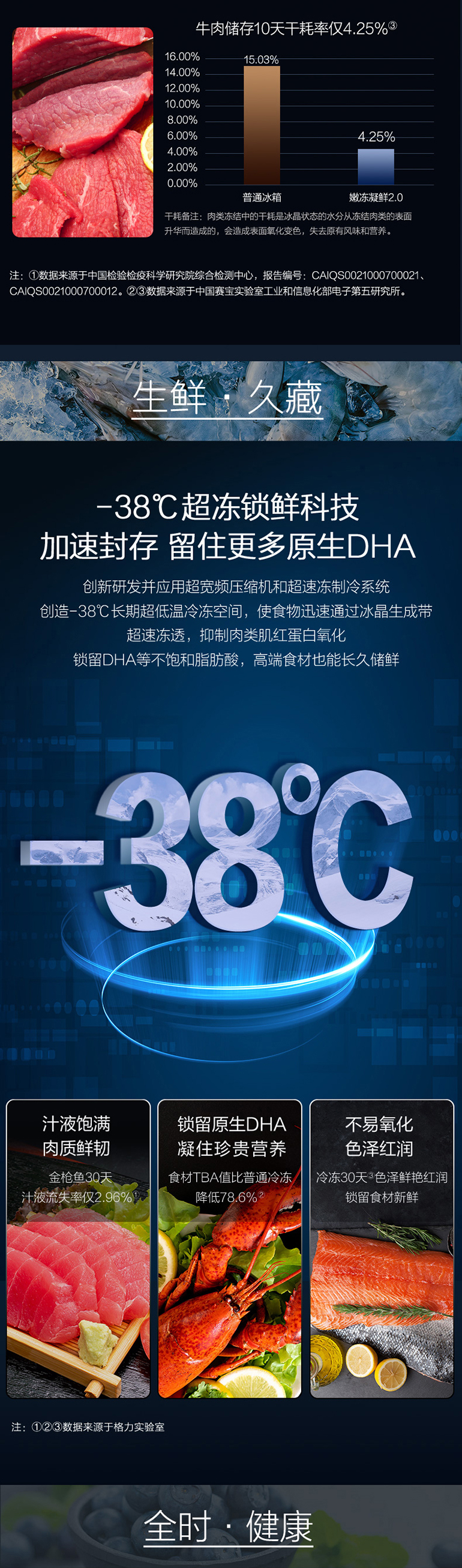 -38℃超冻锁鲜;光合水润养鲜;嫩冻凝鲜2.0;HCP全时除菌净味