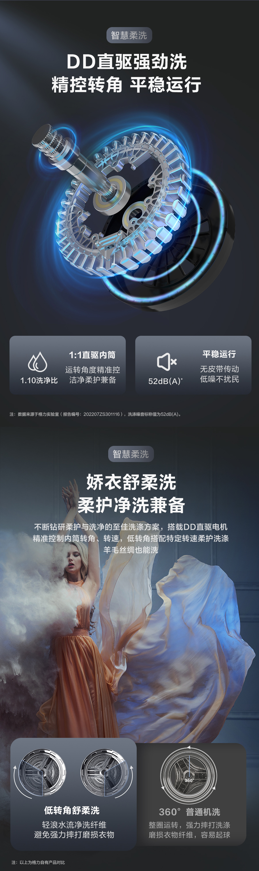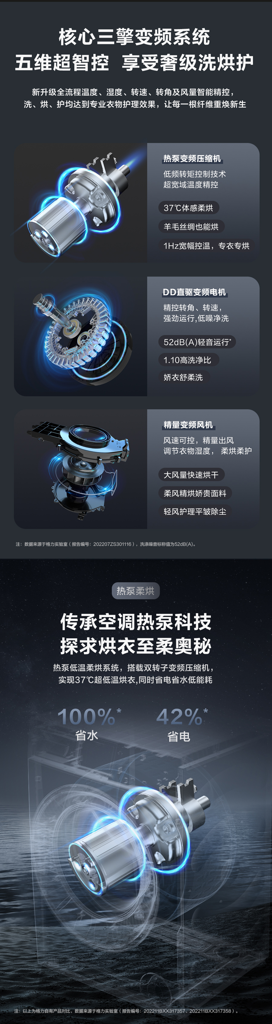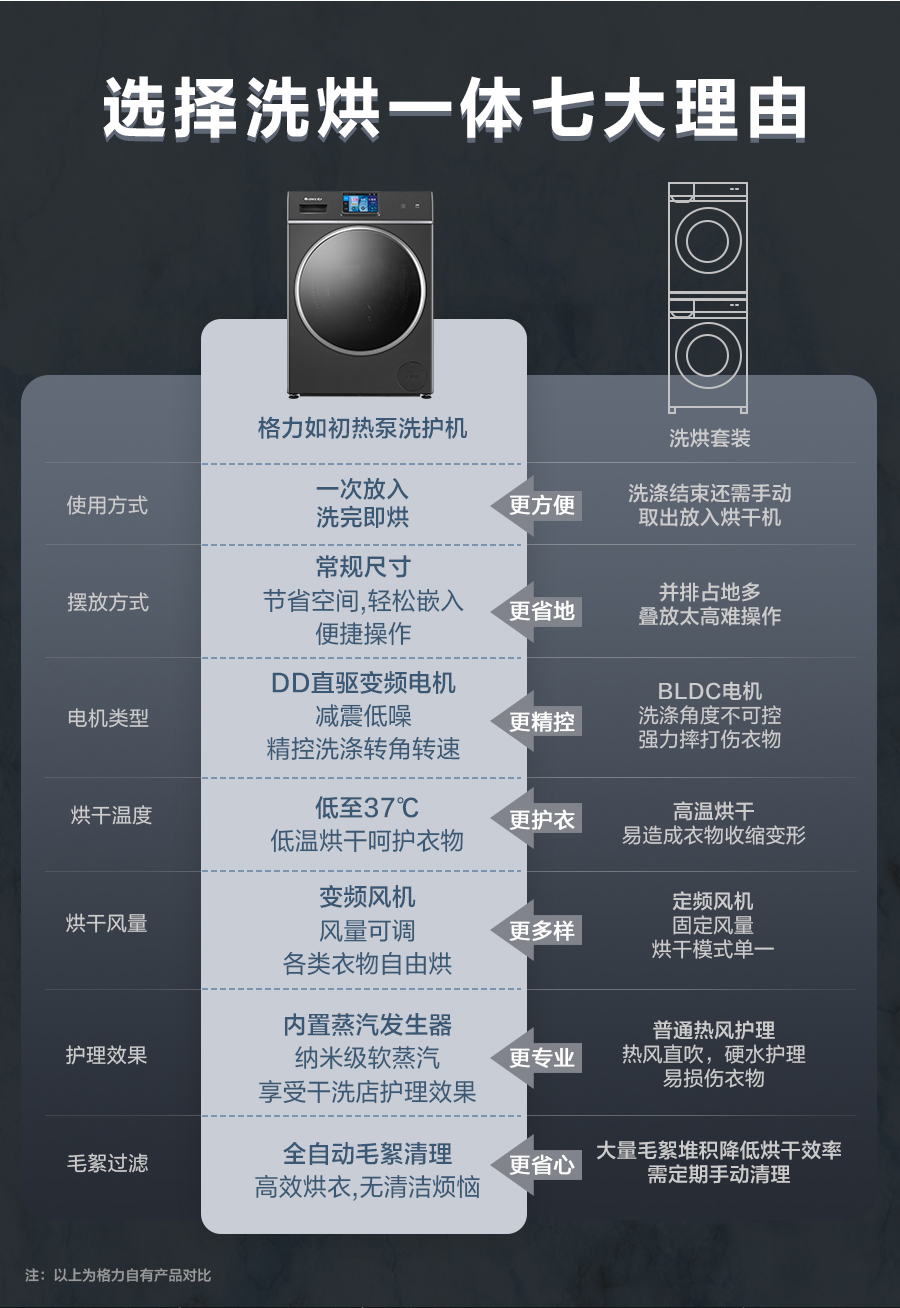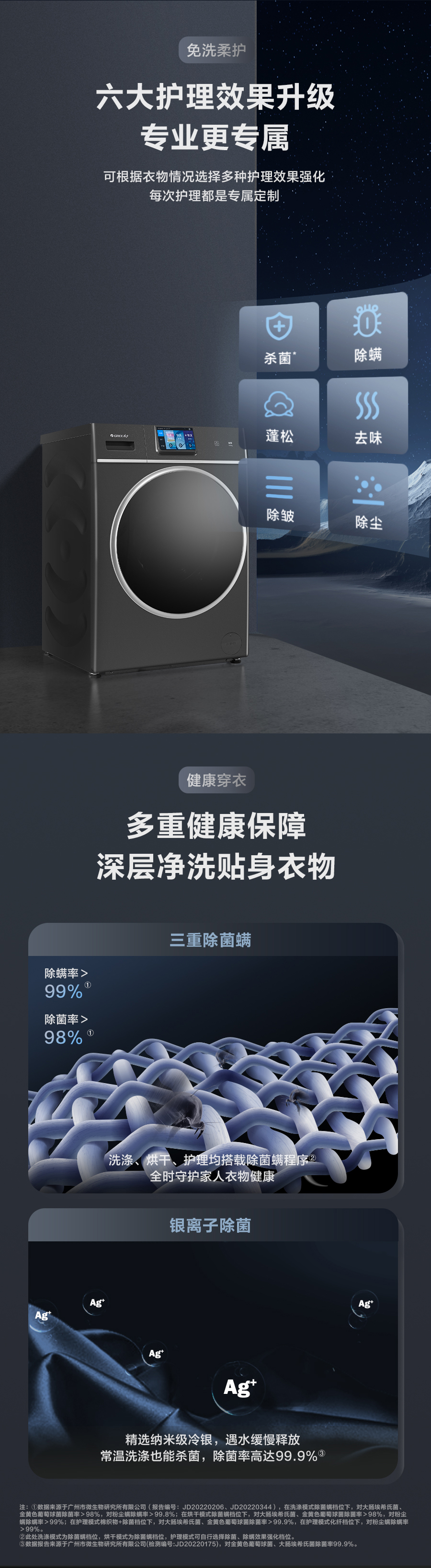 37℃低温柔烘不伤衣;全域超微蒸汽洗;ICleaner全域智清洁